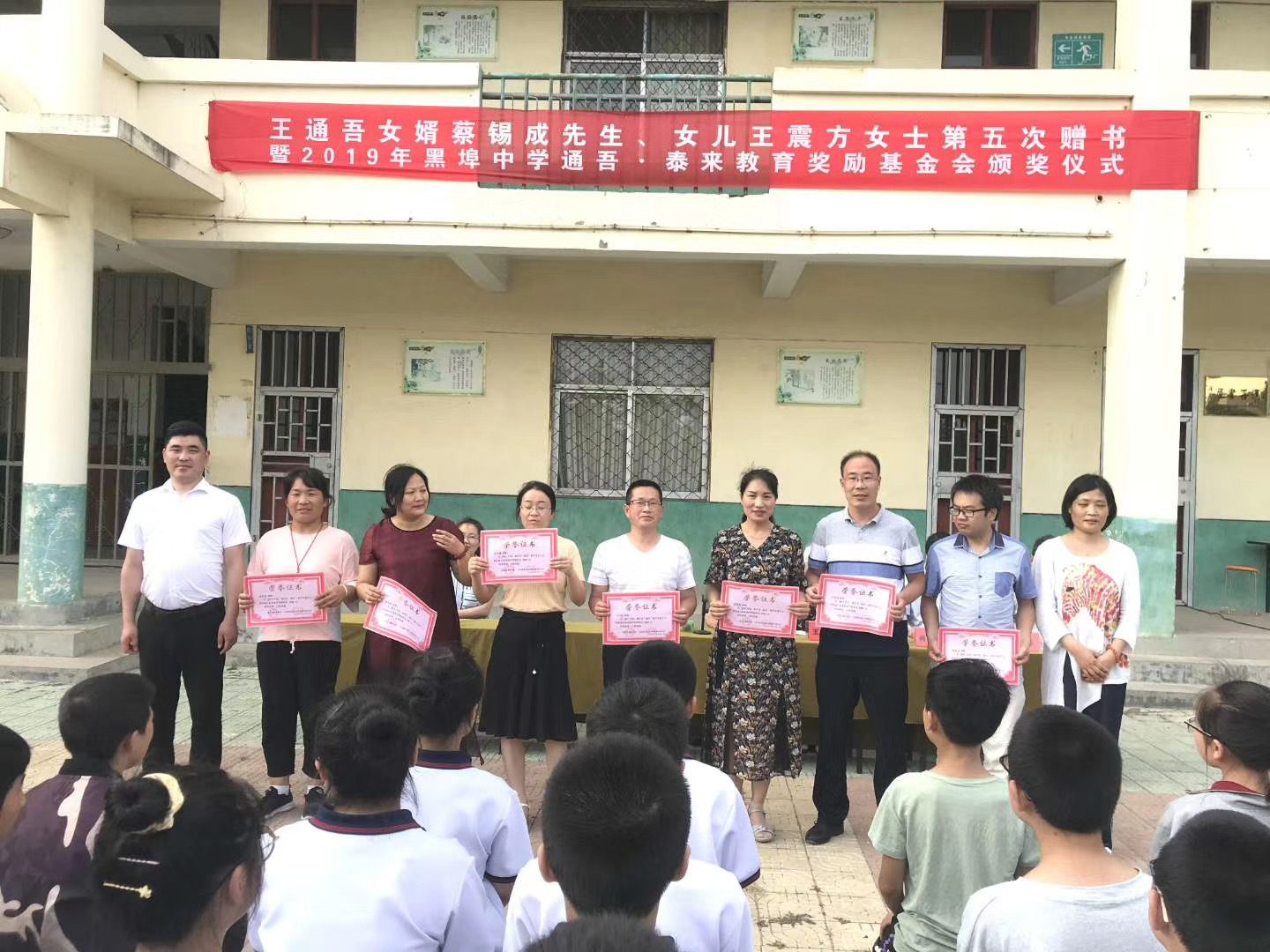 泰來包裝董事長——王天佑為優秀新沂市黑埠中學學子頒發榮譽證書